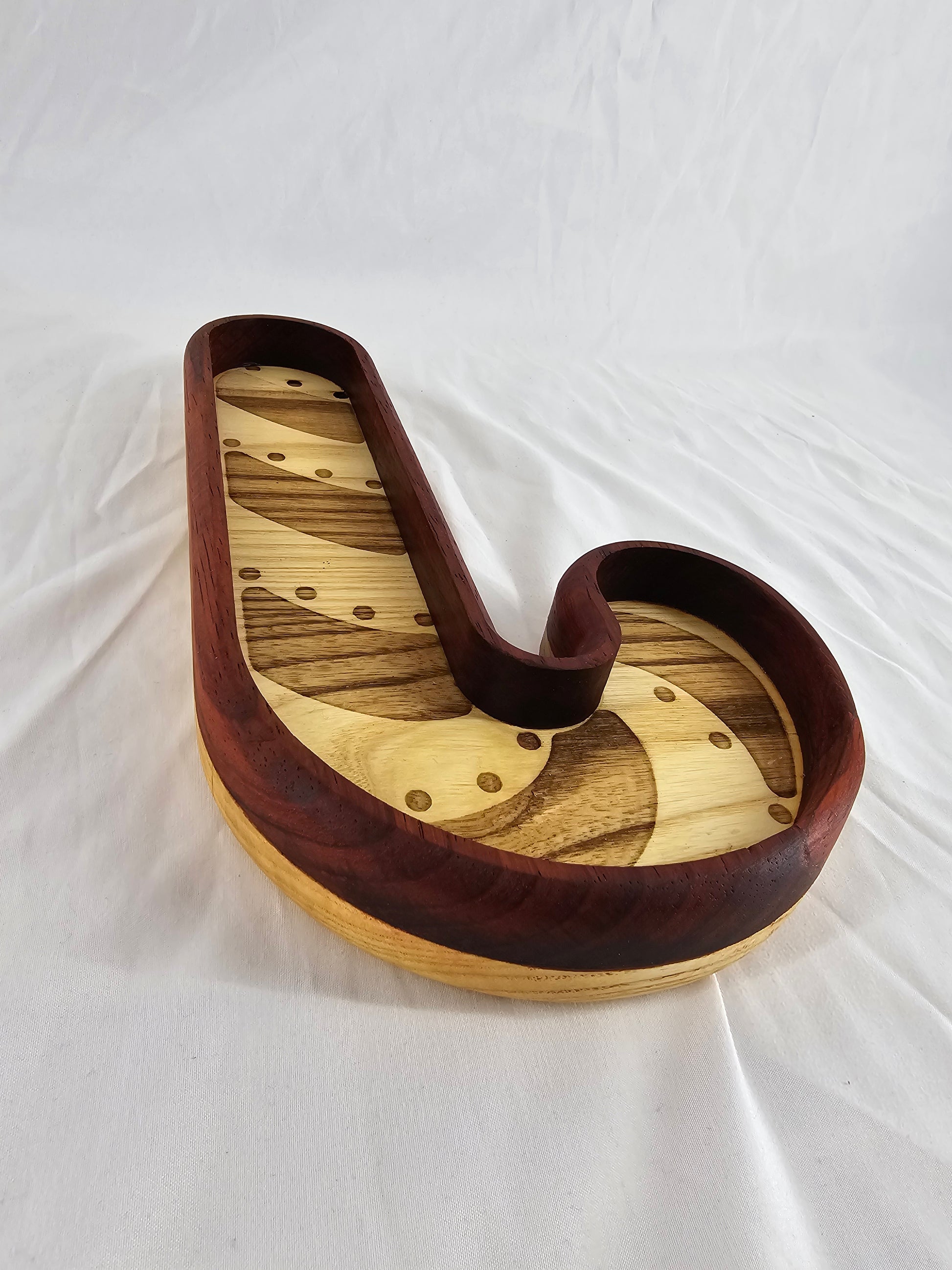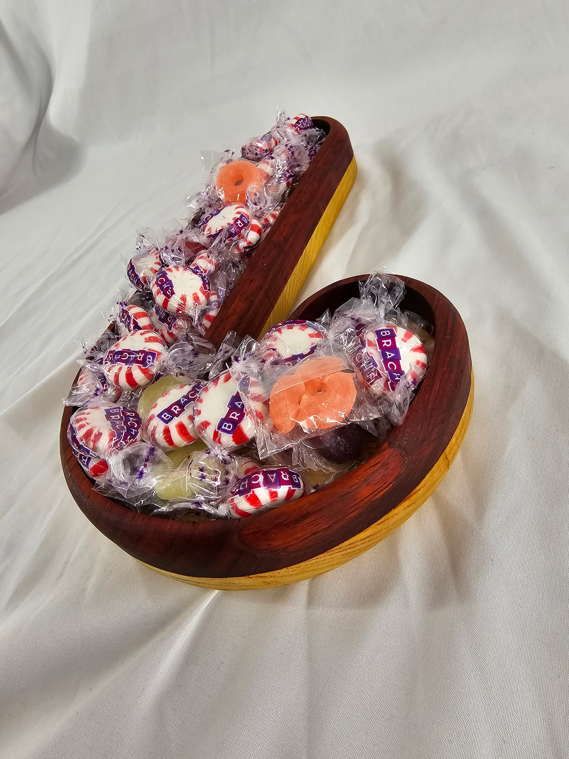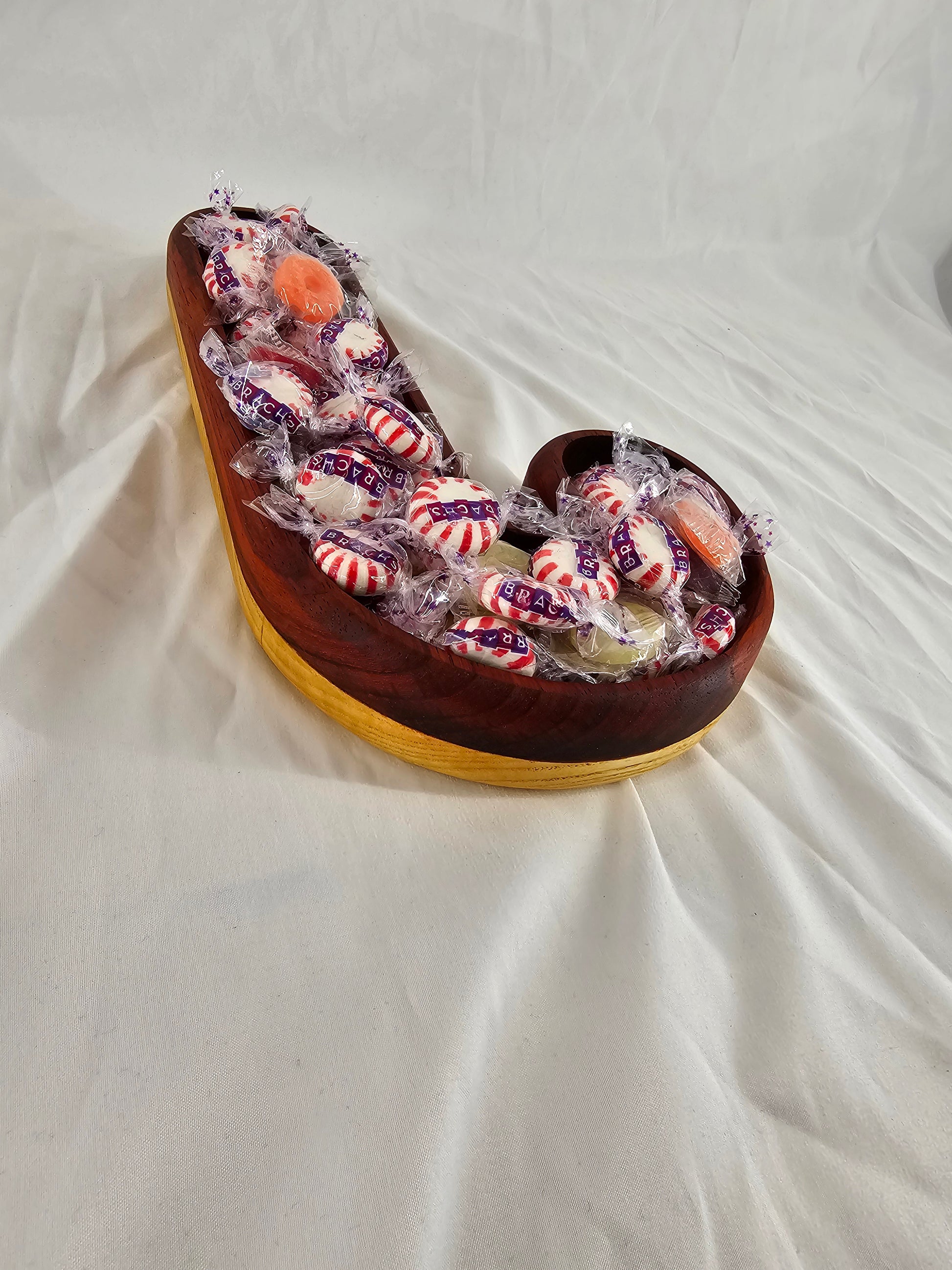 Sweeten your holiday celebrations with our Handcrafted Wooden Candy Cane Candy Dish! This beautifully designed dish is crafted from the rich red hues of padauk wood and the soft, light tones of ash, creating a striking contrast that mirrors the iconic look of a candy cane.