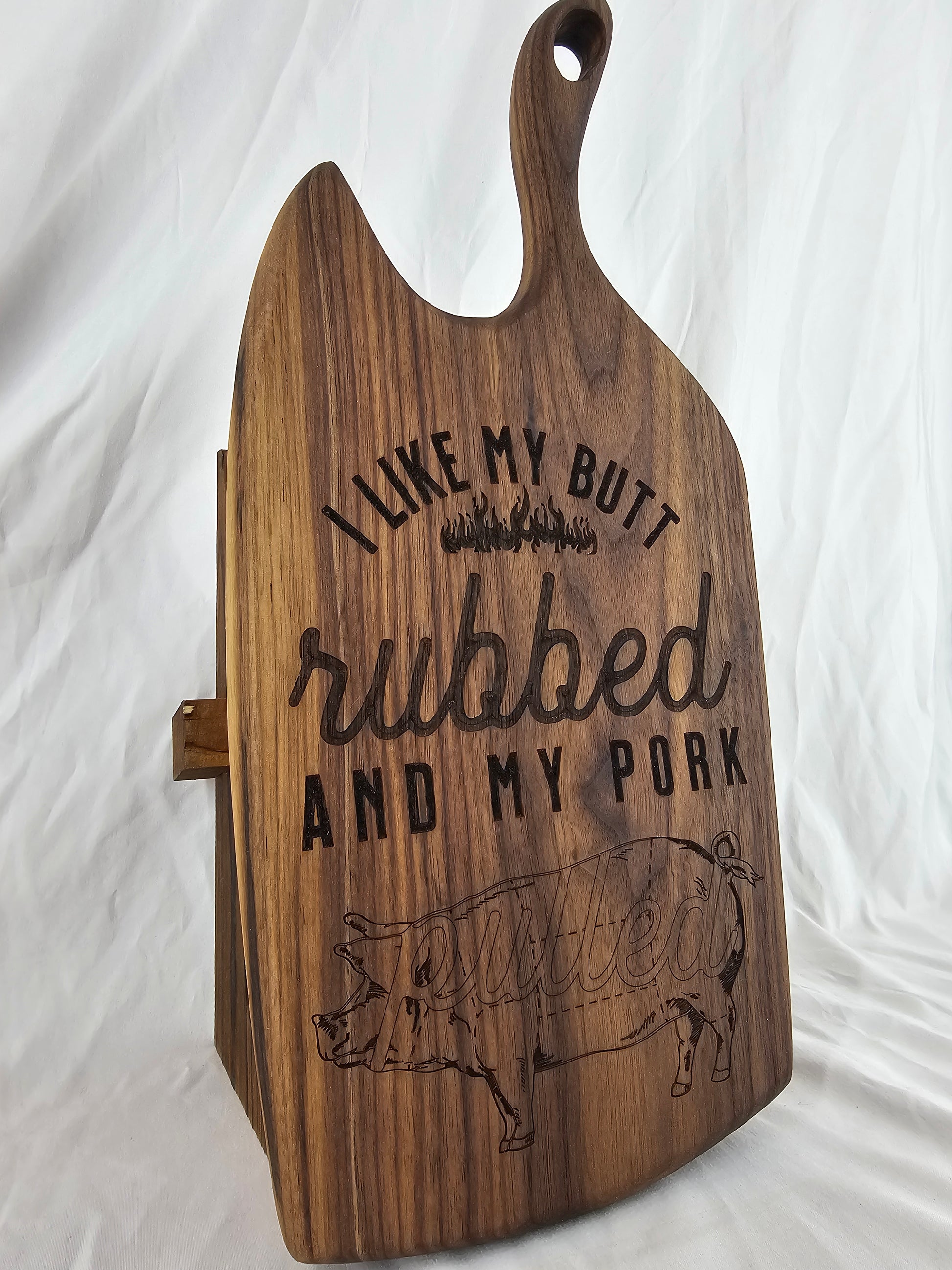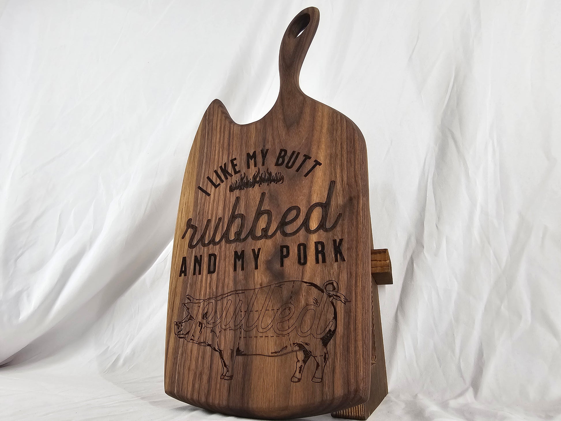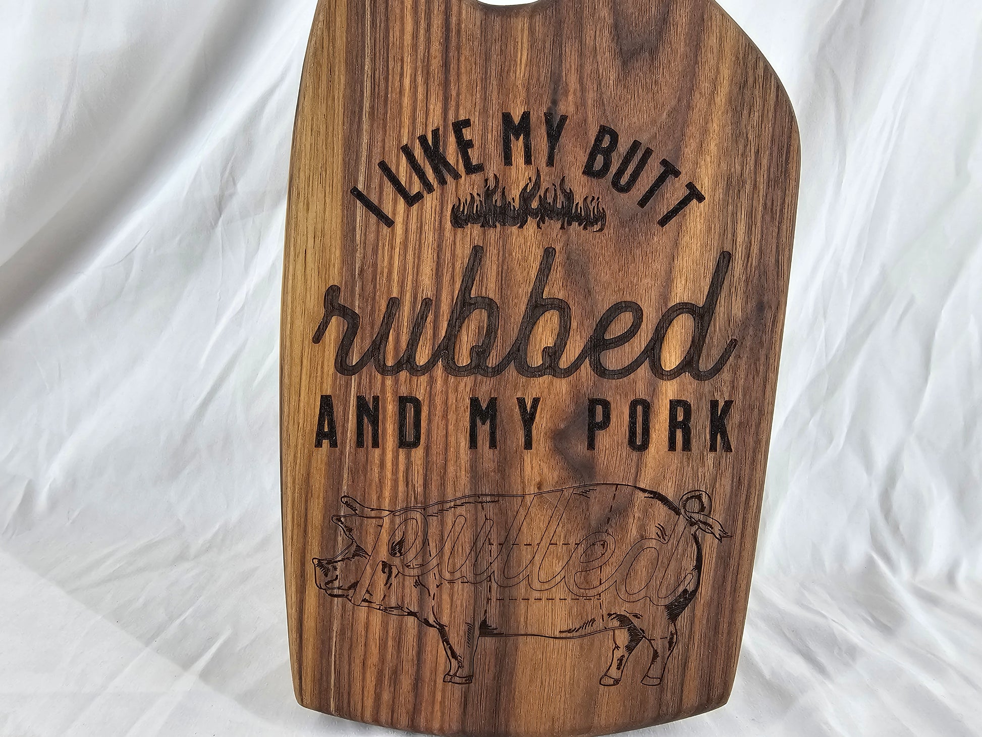 "I Like My Butt Rubbed and My Pork Pulled" Walnut Serving Board
